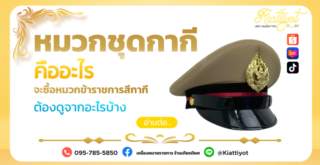 หมวกชุดกากีคืออะไรต้องการสั่งซื้อหมวกสีกากีต้องพิจารณาจากอะไรบ้างและทั้งหมดนี้คือข้อแนะนำดีๆ ที่เรามาฝากหากคุณกำลังมองหาแหล่งจำหน่ายหมวกข้าราชการสีกากีราคาถูก สินค้าดีมีคุณภาพหมวกชุดกากีชาย-หญิง ร้านเกียรติยศเรามีจำหน่ายแบบครบวงจร แหล่งผลิตและจำหน่ายชุดข้าราชการไทย หมวกข้าราชการ กระดุมข้าราชการ ฯลฯ สั่งซื้อผ่านช่องทางออนไลน์ ร้านนี้เชื่อถือได้ประสบการณ์มากกว่า 10 ปี