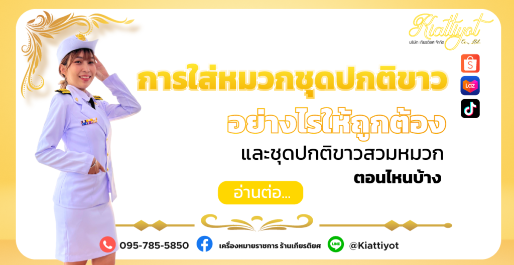 เนื่องจากในปัจจุบันนี้มีร้านที่ให้บริการจำหน่ายหมวกชุดขาวปกติจำนวนมาก จนทำให้หลายคนไม่รู้จะเลือกซื้อหมวกชุดปกติขาวกับที่ไหนดี ที่มีคุณภาพ ได้มาตรฐาน เราขอแนะนำ kiattiyotuniform ร้านจำหน่ายและผลิตชุดข้าราชการและเครื่องหมายข้าราชการแบบครบวงจร ทำการจำหน่ายหมวกชุดปกติขาวให้กับคุณในราคาถูก ถูกต้องตามกำหนด เมื่อสวมใส่ออกมาก็ทำให้ดูสง่ามากขึ้น ซึ่งหากสนใจที่จะสั่งซื้อหมวกชุดปกติขาวหรือชุดข้าราชการกับเรา ก็สามารถทักเข้ามาสอบถามข้อมูลเพิ่มเติมกับเราได้ที่นี่เลย