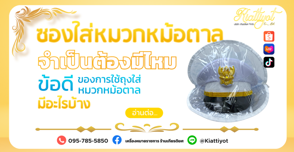 ซองใส่หมวกหม้อตาลหรือถุงใส่หมวกหม้อตาล คืออะไร มีข้อดีอย่างไรบ้างเป็นอุปกรณ์จัดเก็บที่ช่วยป้องกันฝุ่นละอองหรือคราบสกปรกต่างๆ และยังป้องกันไม่ให้หมวกเสียรูปทรงทำให้หมวกดูใหม่เอี่ยมเสมอ ดังนั้นซองใส่หมวกหม้อตาลจึงเป็นอุปกรณ์ที่ข้าราชการไทยจำเป็นต้องมีไว้ หาซื้อซองใส่หมวกหม้อตาลราคาถูกต้องร้านเกียรติยศเท่านั้น